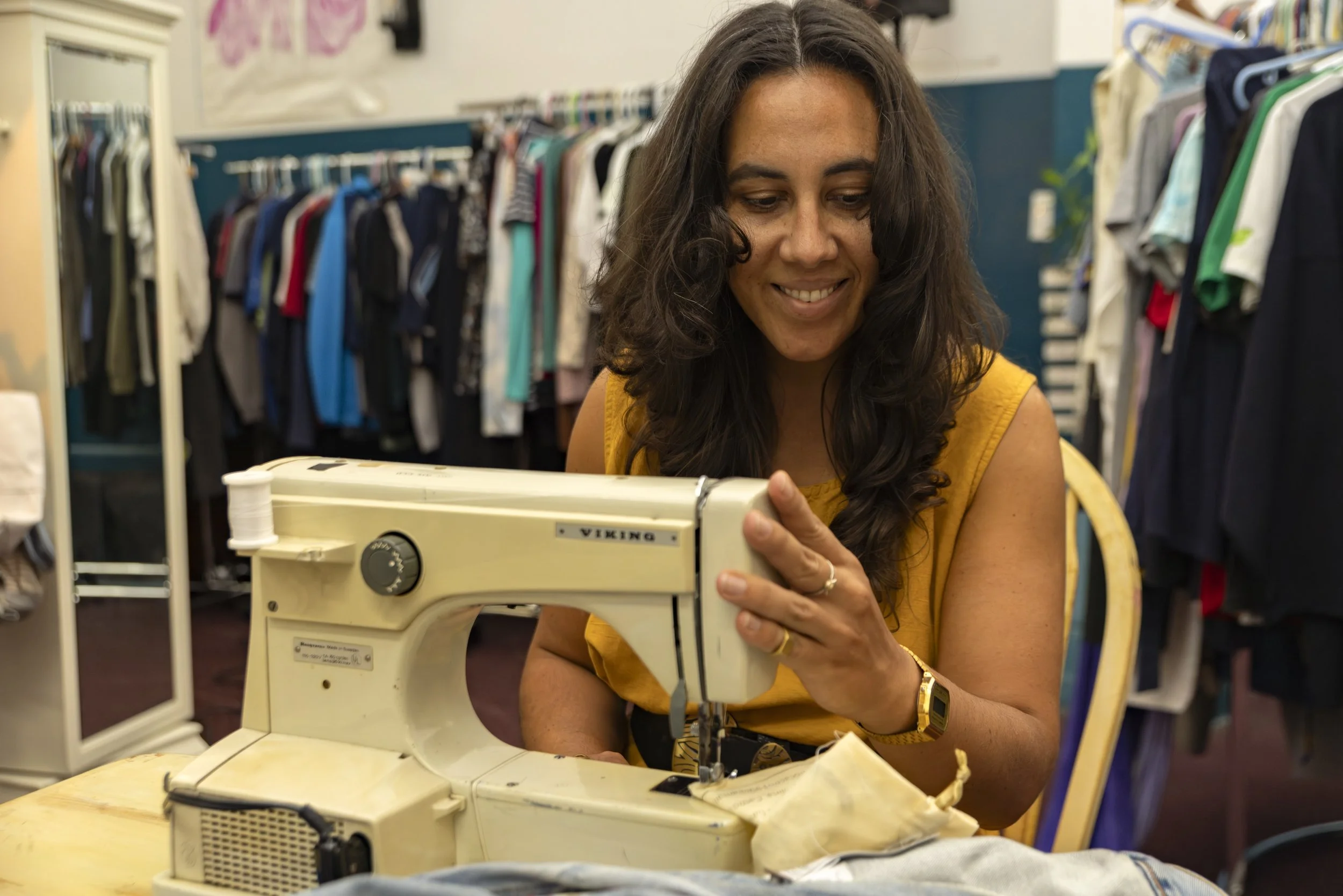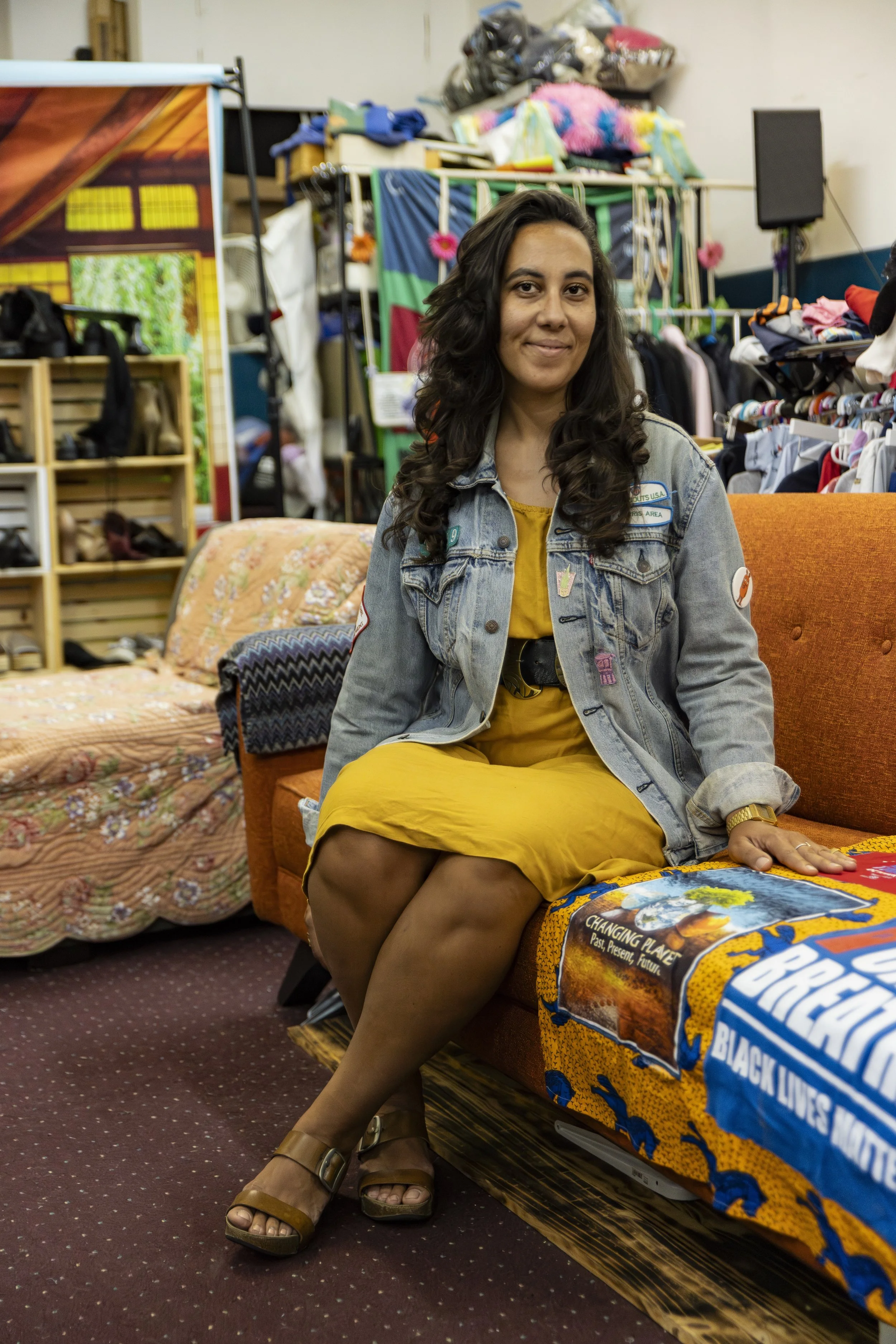 Andrea at the previous location of the Sustainable Fashion Community Center in Harlem, a place for all New Yorkers to come to find new old clothes, donate their things, co-work, and build local community.